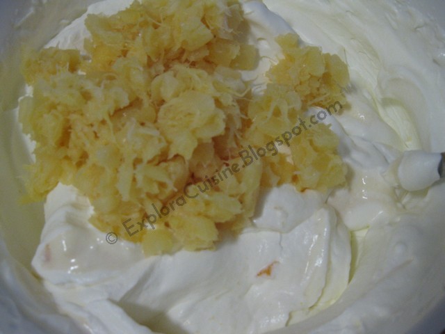 We drain the pineapple very well and add it to the cream, folding it gently.