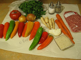 Though I love stuffed peppers soup I rarely make it since my husband is not a huge fan of tomato based soups and I guess all of us try to cook food that all family enjoys right? Once in a while I make this soup hoping that I'll get that special flavour my grandma's soup used to have, and even though it's never the same, the way I remember it is always special :) For me every dish has a history and I always relate the flavour to my memory :) Because heat didn't take control outside yet, I thought it'd be a great occasion to cook this delicious soup :)