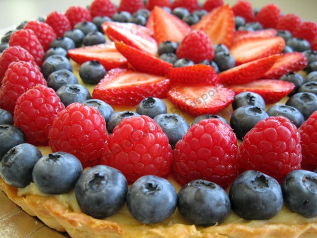 We wash the fruits and we pat them dry using paper towels. We decorate the tart. Voila!